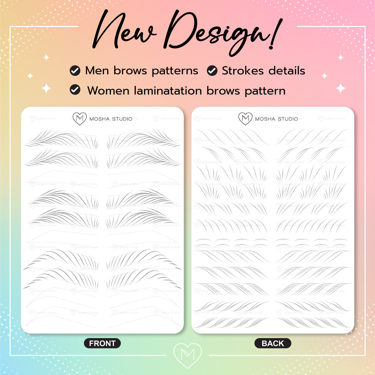 Mosha Studio & MEKA are proud to announce our newest versions of latex practice skins, designed to make brow practice easier than ever. Now with new and improved hair stroke patterns for men, and new lamination styles for women's brows. Add them to your order today!